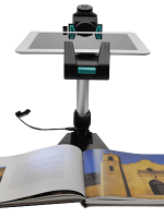 Have an Apple or Android tablet? Did you know that you can make your own CCTV using it and an inexpensive stand? Both types of tablets have built-in accessibility features and available apps to use their cameras to magnify whatever the camera is pointed at. You put the tablet in the stand with the camera pointed down so that anything you put under it will be magnified on the tablet. You can also use a text-to-speech app to read any text you put under the tablet.