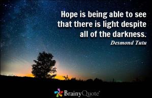 “Hope is being able to see that there is light despite all of the darkness.” – Desmond Tutu