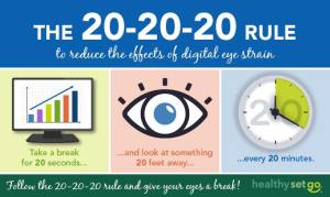 There’s the 20-20-20 Rule: Every 20 minutes, look up and focus 20 feet away for 20 seconds.