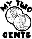 My 2 cents which means ‘my opinion’.